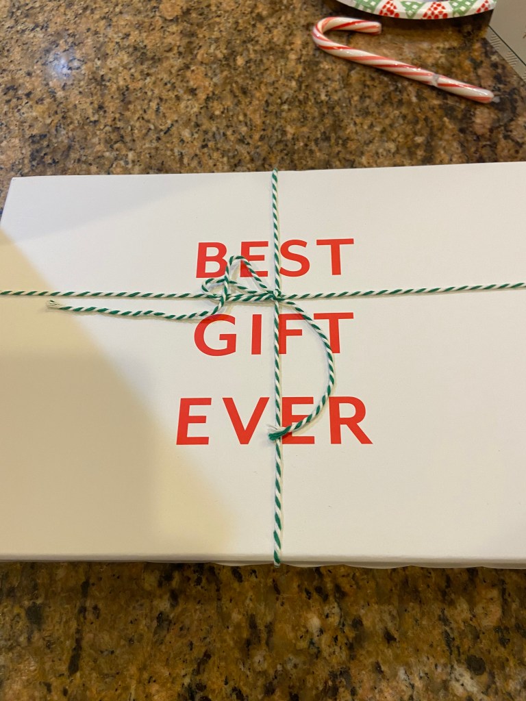 Maybe it was the seven plus hours spent on the couch in a movie stupor, maybe it was the wine, or maybe it was just the excitement of their arrival, but I had no clue what was in the box. I slowly opened it and opened the card that was inside…and that’s when I got it.
