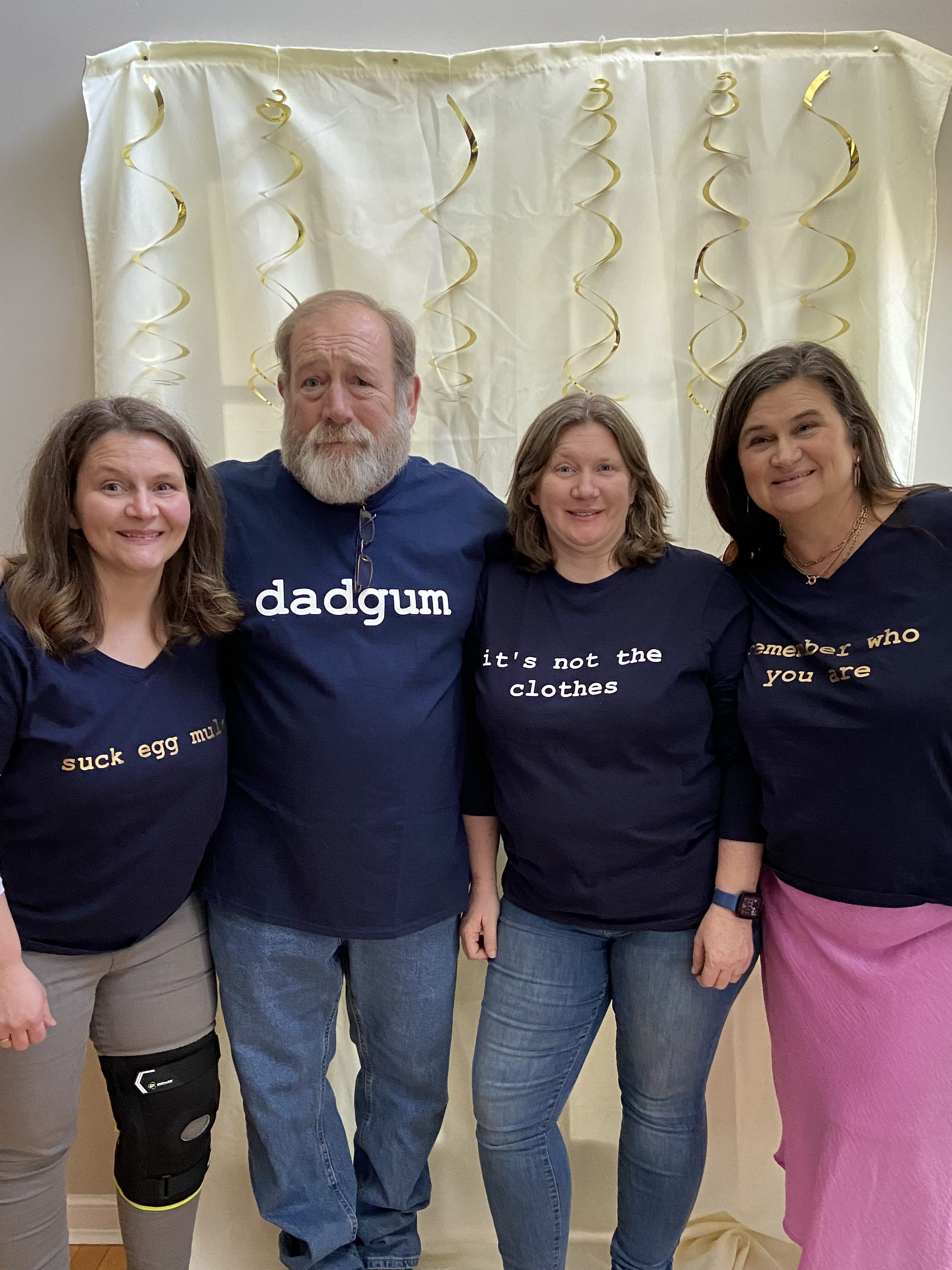 So yesterday, as we gathered for pictures to celebrate our daddy’s birthday, I was not expecting it to hit me so hard. My oldest brother, and two younger sisters posed wearing our new t-shirts with our favorite daddy sayings on them. Even as we had spent the morning choosing which quote we each wanted on our shirt, it didn’t hit me. Even as we smiled for the camera, it didn’t hit me. But later, as I sat scrolling through the hundreds of pictures from earlier in the day, it hit me hard. The four of us stood with our arms wrapped around each other, smiling and laughing. It should be five. He should have been here with us with his very own Daddy-saying across the front of his shirt. Five of us should have gathered with our parents for pictures at the end of the night. Five of us should have been singing happy birthday and watching daddy blow out his candles.